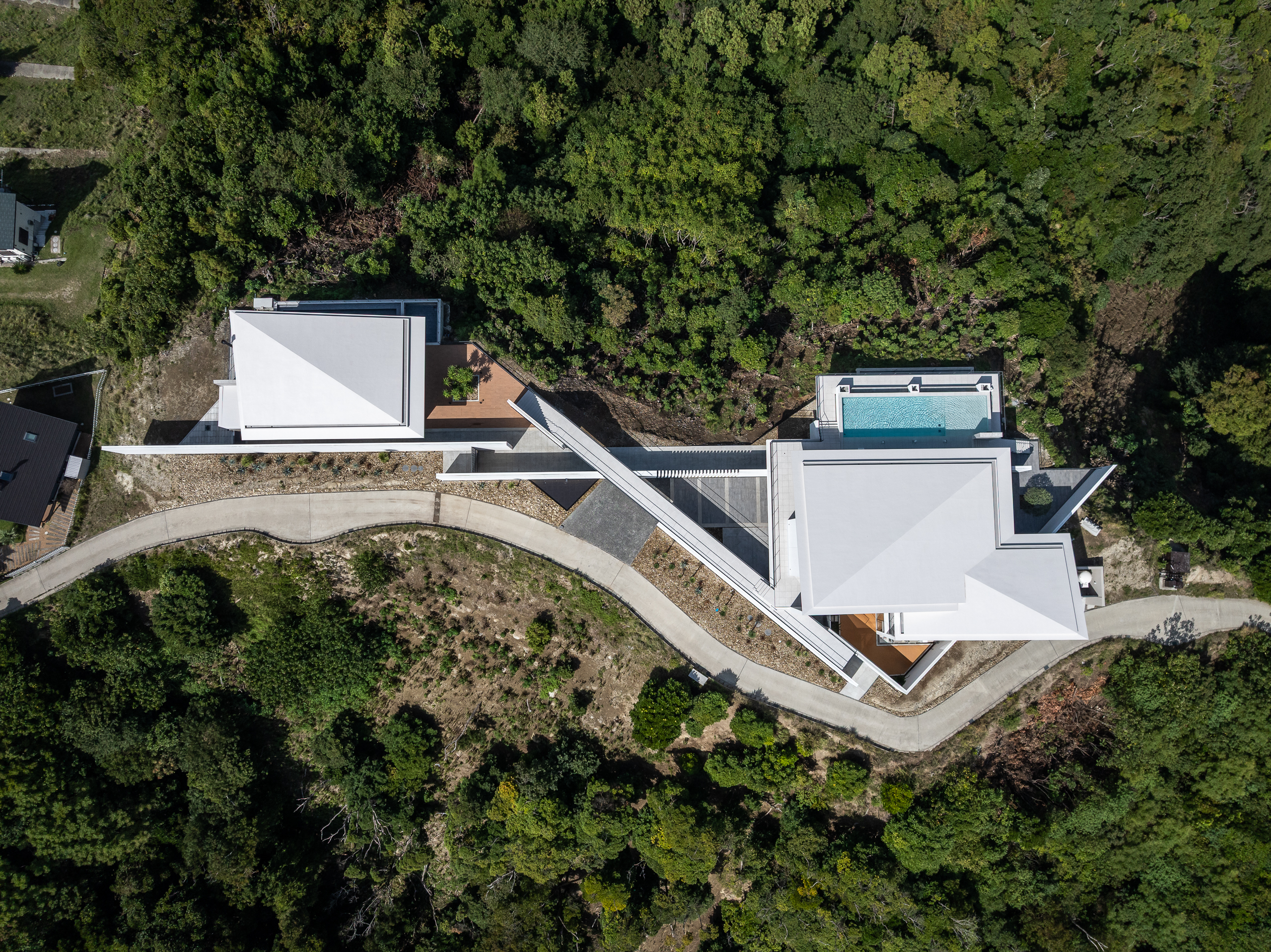 山の稜線上に位置しており、東京湾を一望できるだけではなく、大島と富士山を望むこともできます。